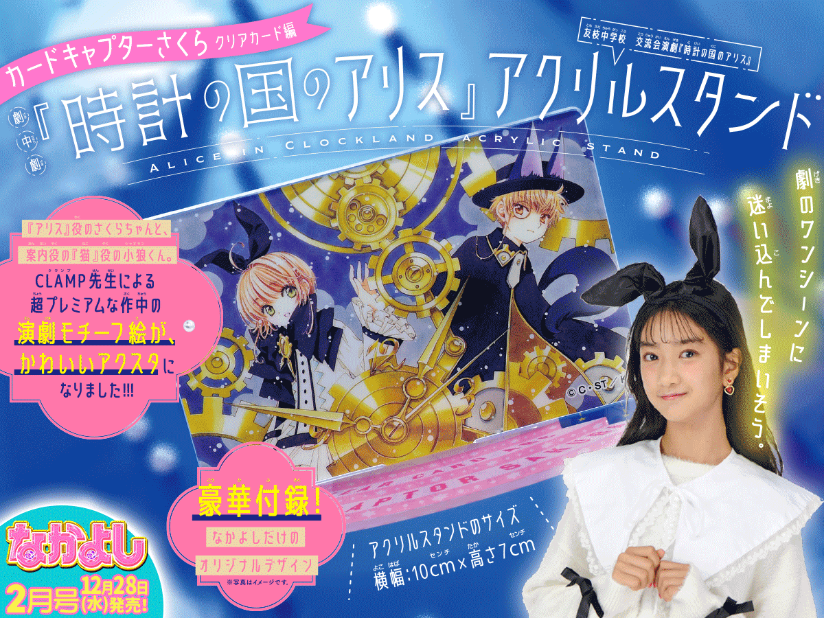 なかよし1月号は嬉しいサプライズいっぱい! 付録は「カードキャプターさくら クリアカード編」2023年スケジュール手帳セット♪ クリアカード編のイラストが14枚も入った画集みたいなマンスリー手帳に、キュートなファー付きのペンがついてくる♡ そして超特大ニュース‼ あの遠山えま先生が帰ってきた! 大人気「ヴァンパイア男子寮」が再始動しただけでなく、新れんさい「魔女メイドは秘密を知っている。」が始まるよ~! ぜったい見逃せない☆ 豪華な1月号もお楽しみに~♡