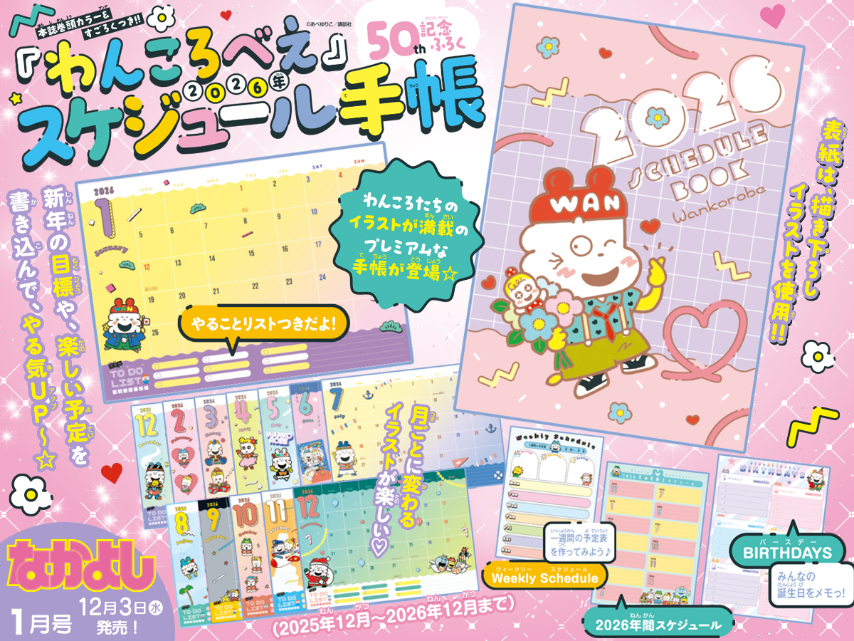 なかよし12月号は、遠山えま氏&天道グミ氏のW新連載がスタート! 付録は70周年記念、人気作品大集合の「アニバーサリー★ポケットホルダー」!25/10/31New!
