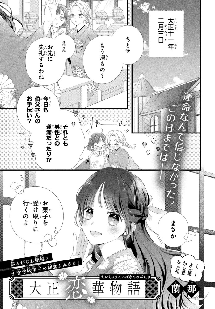 なかよし初登場作家! 夢見がちお嬢様と士官学校男子を紅椿が結ぶ胸キュン♥大正ロマン恋物語『大正恋華物語』(蘭那)。